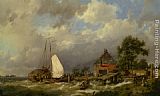 Boats Docking in an Estuary by Hermanus Koekkoek Snr