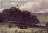 landscape with trees and two cows in meadow by Edward Mitchell Bannister