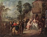 Figures At The Village Pond, Sunset by Jean-Charles Cazin