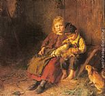 Two Children Playing with Rabbits by Felix Schlesinger