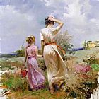 Elegant Arab Ladies on a Terrace at Sunset by Rudolf Ernst