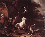 Birds and a Spaniel in a Garden by Melchior de Hondecoeter
