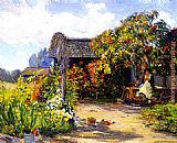 Woman Seated in the Garden Sewing by Joseph Kleitsch