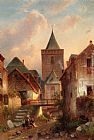View In A German Village With Washerwomen by Charles Henri Joseph Leickert