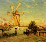 Figures At The Village Pond, Sunset by Jean-Charles Cazin