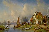 A summer landscape with figures on a riverbank by Charles Henri Joseph Leickert