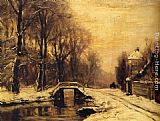 A Snowcovered Forest With A Bridge Across A Stream by Louis Apol