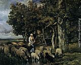 Shepherdess watering flock by Charles Emile Jacque