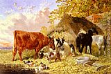 Horses, Cows, Ducks and a Goat by a Farmhouse by John Frederick Herring, Jnr