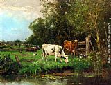 Cows Watering In A Meadow by Johan Frederik Cornelis Scherrewitz