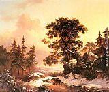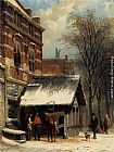 Skaters in a Frozen Winter Landscape by Charles Henri Joseph Leickert