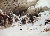Alpine Pass in Winter with Monks by Karl Blechen