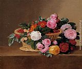 A Young Girl with a Basket of Flowers by Etienne Adolphe Piot