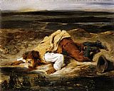 A Mortally Wounded Brigand Quenches his Thirst by Eugene Delacroix