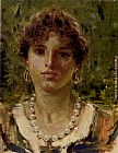 Portrait Of A Girl Wearing A Pearl Necklace by Francesco Paolo Michetti